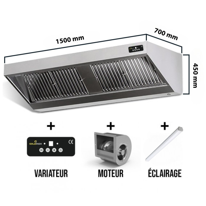 La hotte professionnelle GOLDINOX PREMIUM est spécialement conçue pour répondre aux besoins des environnements de cuisson intensifs, tels que les cuisines de restaurants, de collectivités ou de laboratoires agroalimentaires. De fabrication européenne et conçue avec des matériaux de qualité professionnelle, elle associe performance d’extraction, robustesse, sécurité et hygiène, tout en s’adaptant aux contraintes techniques les plus complexes.