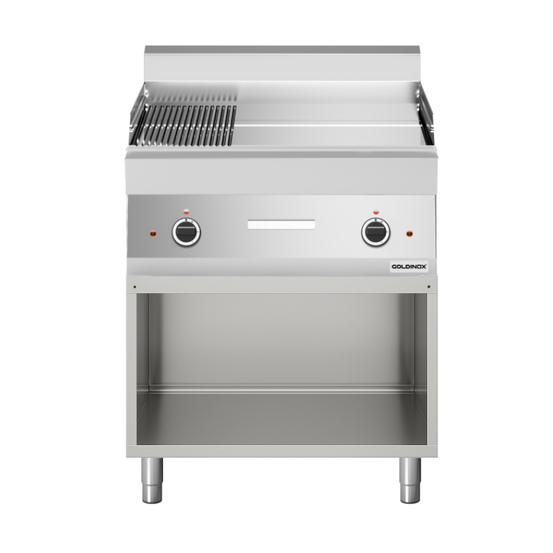 La plaque de cuisson électrique GOLDINOX PREMIUM représente l'alliance parfaite entre technologie de pointe et savoir-faire italien. Conçue spécifiquement pour les professionnels de la restauration exigeants, cette plancha mixte offre une polyvalence exceptionnelle grâce à sa surface lisse (2/3) et rainurée (1/3).