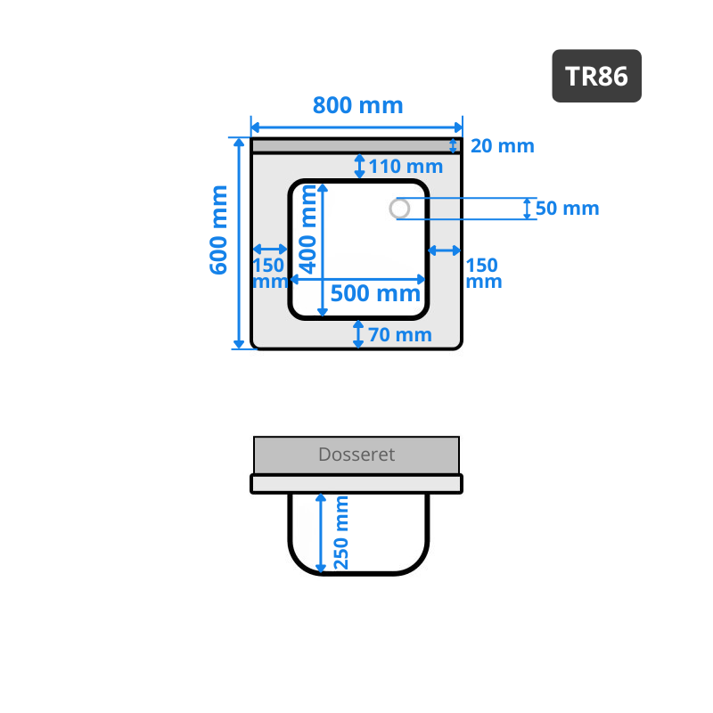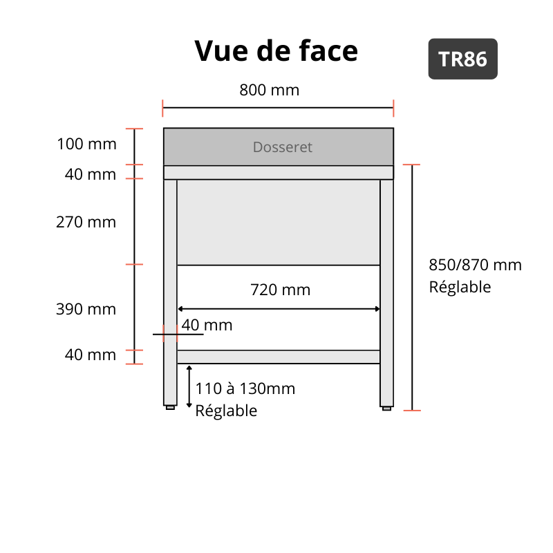 - Dimensions extérieures : 800 x 600 x 850/870 mm