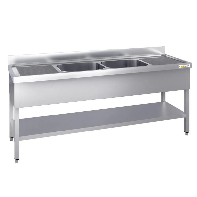 La plonge professionnelle GOLDINOX – Modèle IDEAL est conçue pour répondre aux besoins les plus exigeants des cuisines professionnelles, offrant à la fois robustesse, ergonomie et hygiène irréprochable. Fabriquée avec des matériaux de qualité supérieure, elle associe la partie supérieure en acier inoxydable AISI 304, reconnu pour sa résistance exceptionnelle à la corrosion et sa compatibilité avec les normes alimentaires, à des pieds et une étagère inférieure en acier inoxydable AISI 201, garantissant à la fois solidité et longévité.