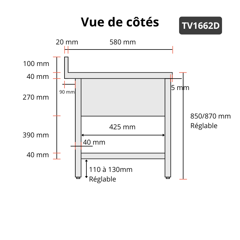 L'un des atouts majeurs de ce modèle est son emplacement dédié au lave-vaisselle . Avec un espace de 600x600 mm et une hauteur compatible de 810/830 mm, cette plonge s'adapte à la plupart des lave-vaisselle professionnels du marché, optimisant ainsi l'organisation de votre espace de travail.