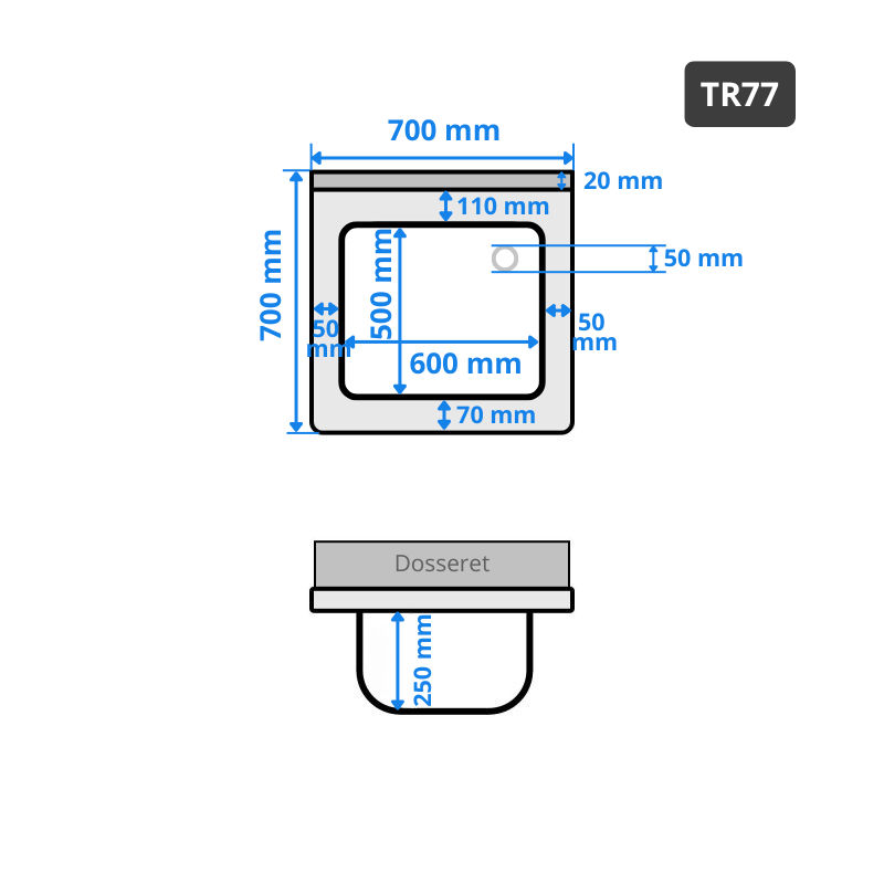 - Dimensions extérieures : 800 x 700 x 850/870 mm