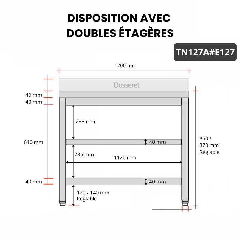 - Compatible avec toutes les tables en acier inoxydable TN127 et TN127A