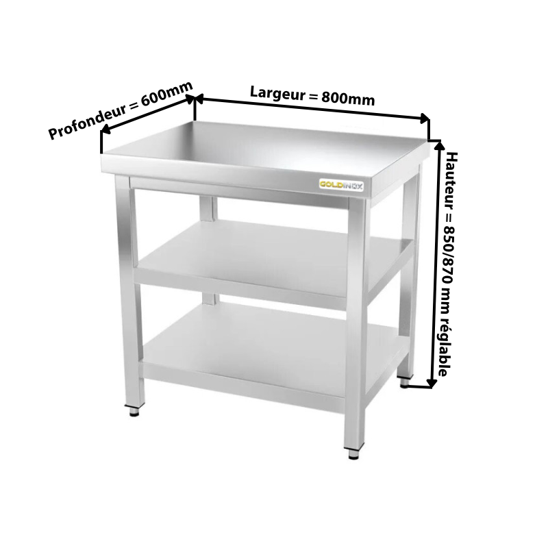 - Etagère inférieure 800 x 600 mm en acier inoxydable pour table de travail inox