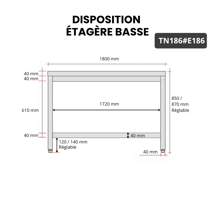 - Compatible avec toutes les tables en acier inoxydable TN186 et TN186A