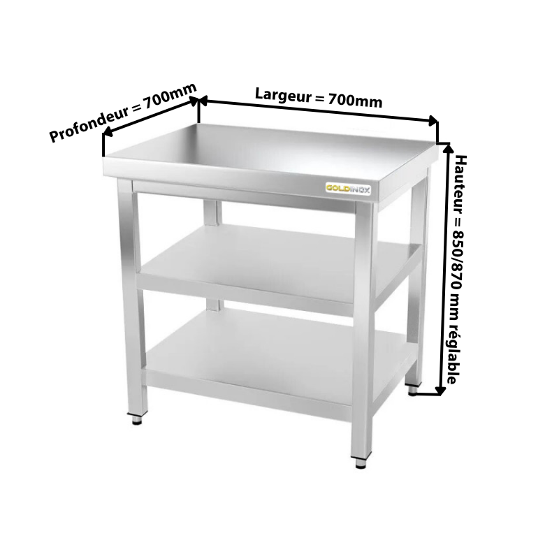- Etagère inférieure 700 x 700 mm en acier inoxydable pour table de travail inox