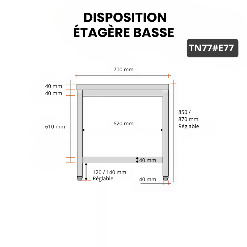 - Compatible avec toutes les tables en acier inoxydable TN77 et TN77A