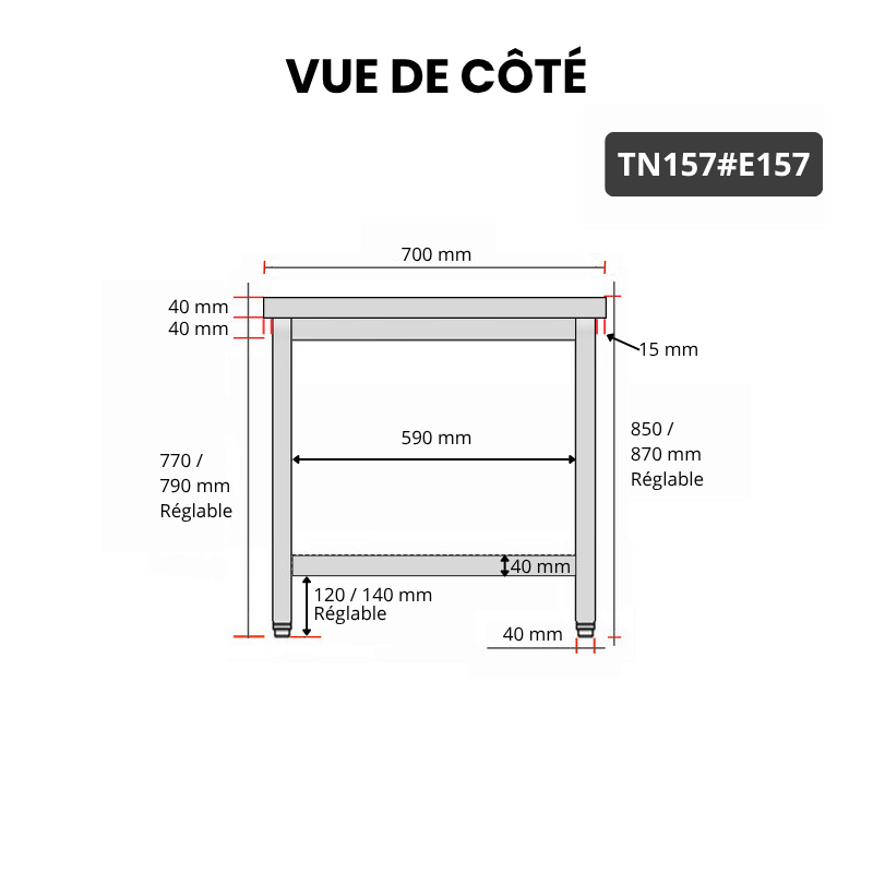 - Compatible avec toutes les tables en acier inoxydable TN157 et TN157A