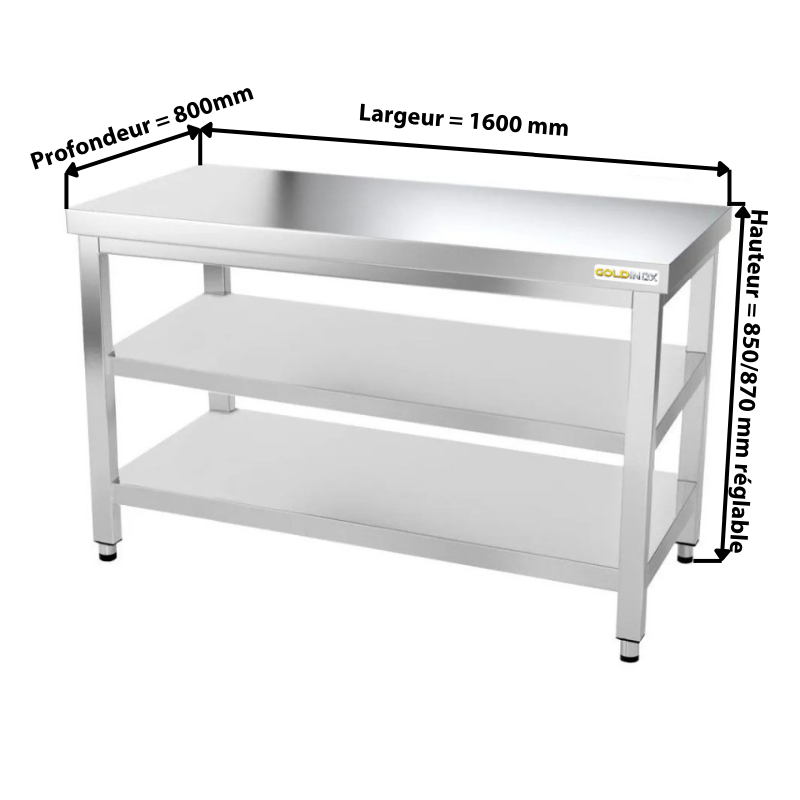 - Etagère inférieure 1600 x 800 mm en acier inoxydable pour table de travail inox