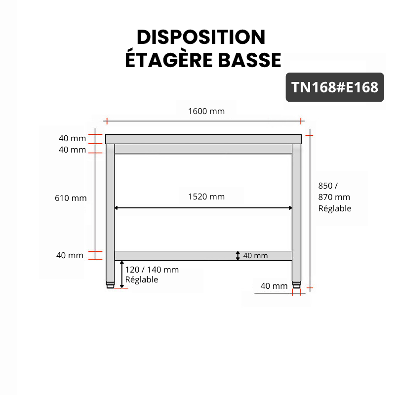 - Compatible avec toutes les tables en acier inoxydable TN168 et TN168A