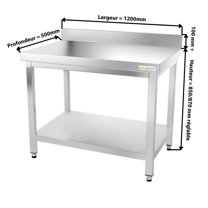 - Etagère inférieure 1200 x 500 mm en acier inoxydable pour table de travail inox