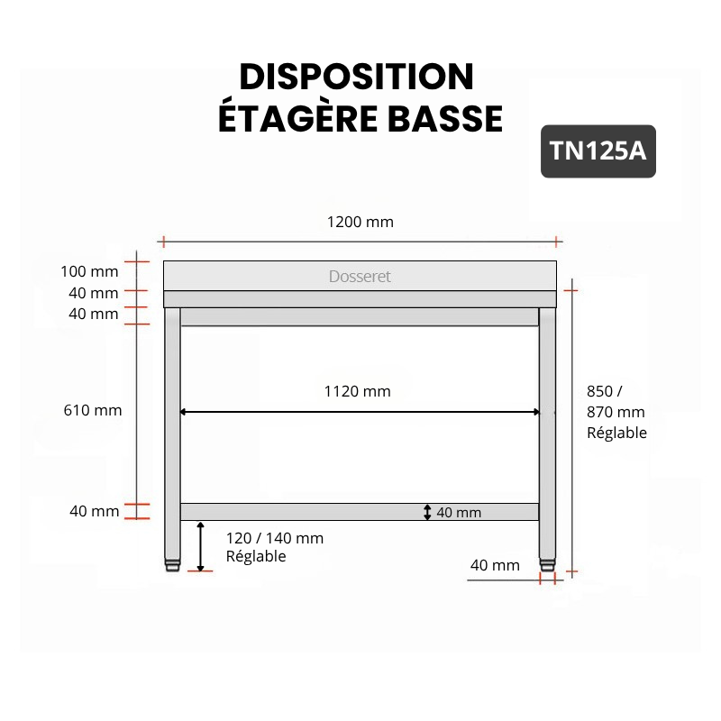 - Compatible avec toutes les tables en acier inoxydable TN125 et TN125A