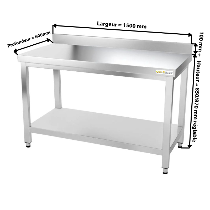 Nos tables en acier inoxydable de marque GOLDINOX® permettent un meilleur aménagement de votre cuisine. Elles sont conçues pour une utilisation intensive et supportent des charges très élevées. Nos tables inox répondent aux normes obligatoires pour le mobilier en milieu professionnel. Le montage est très simple à réaliser et nécessite peu de temps d'exécution.
