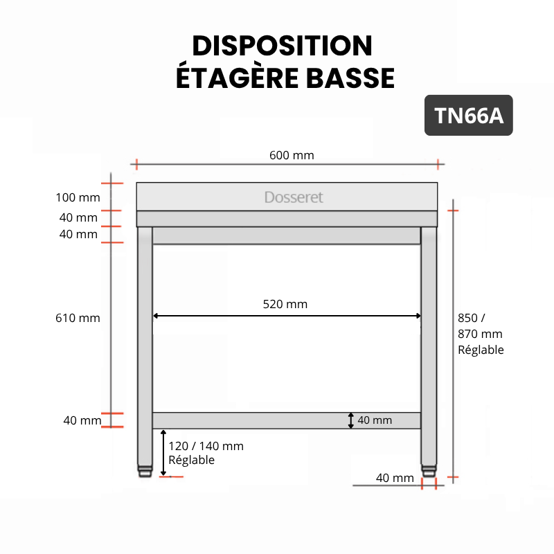 - Compatible avec toutes les tables en acier inoxydable TN66 et TN66A