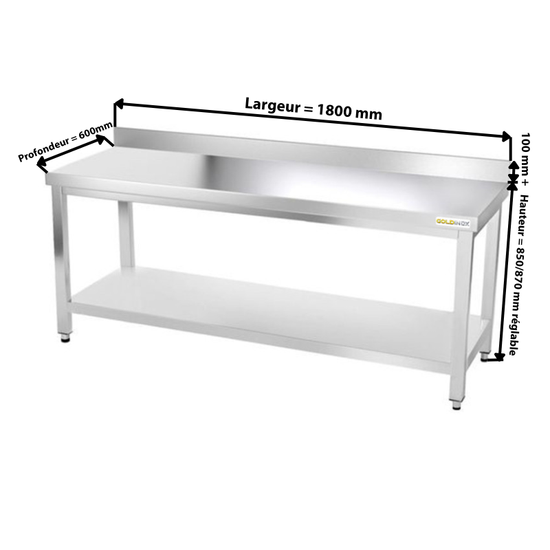 Nos tables en acier inoxydable de marque GOLDINOX® permettent un meilleur aménagement de votre cuisine. Elles sont conçues pour une utilisation intensive et supportent des charges très élevées. Nos tables inox répondent aux normes obligatoires pour le mobilier en milieu professionnel. Le montage est très simple à réaliser et nécessite peu de temps d'exécution.