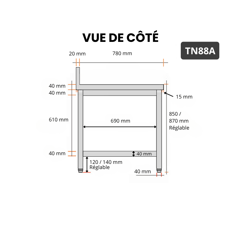 - Compatible avec toutes les tables en acier inoxydable TN88 et TN88A