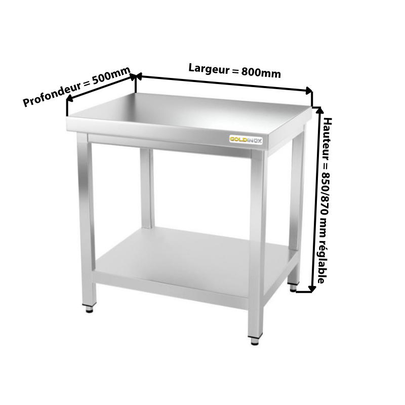 - Etagère inférieure 800 x 500 mm en acier inoxydable pour table de travail inox