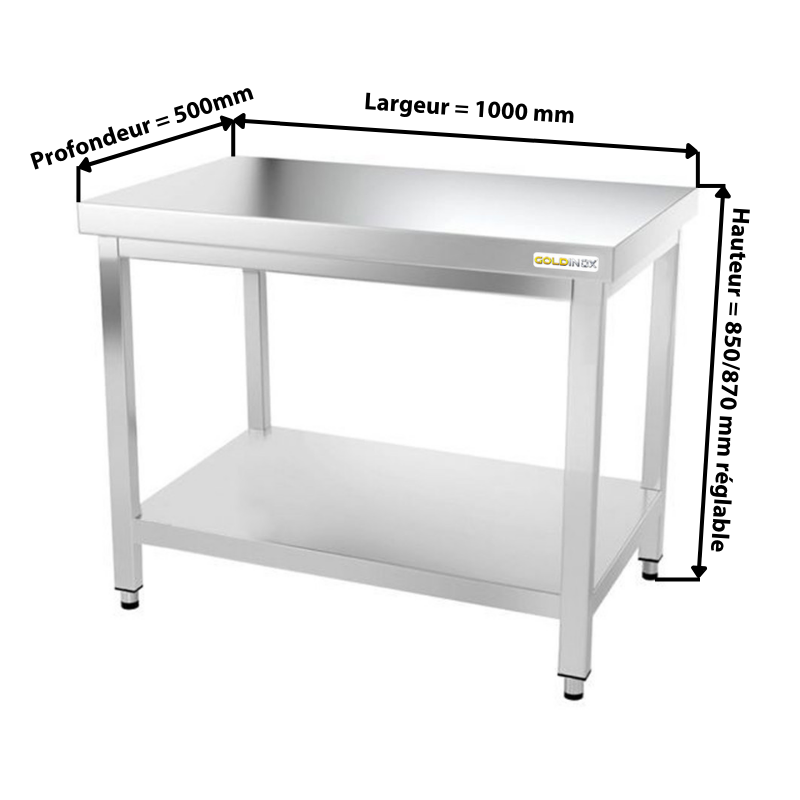 - Etagère inférieure 1000 x 500 mm en acier inoxydable pour table de travail inox