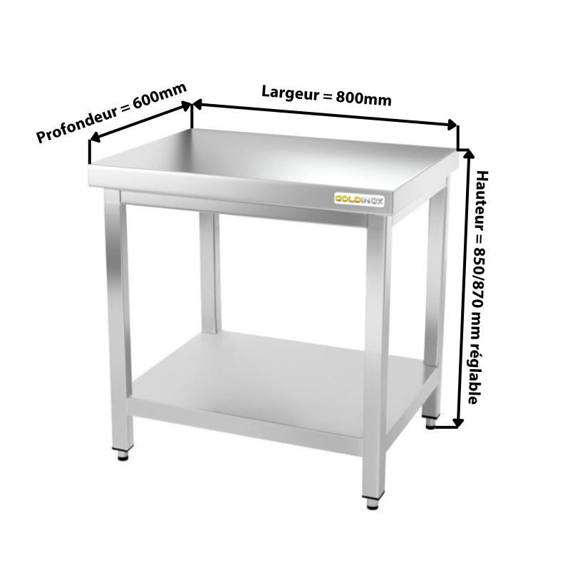 Nos tables en acier inoxydable de marque GOLDINOX® permettent un meilleur aménagement de votre cuisine. Elles sont conçues pour une utilisation intensive et supportent des charges très élevées. Nos tables inox répondent aux normes obligatoires pour le mobilier en milieu professionnel. Le montage est très simple à réaliser et nécessite peu de temps d'exécution.