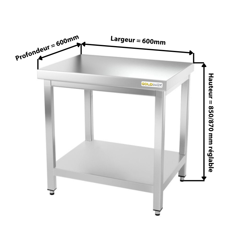 - Etagère inférieure 600 x 600 mm en acier inoxydable pour table de travail inox