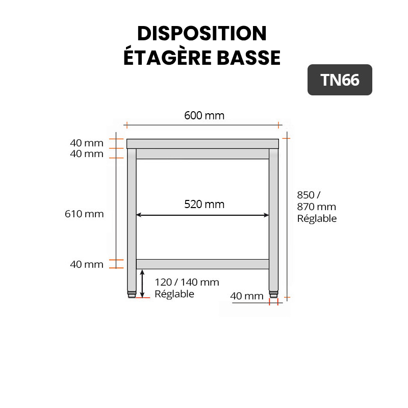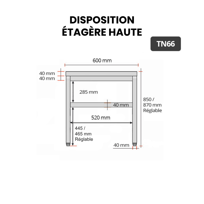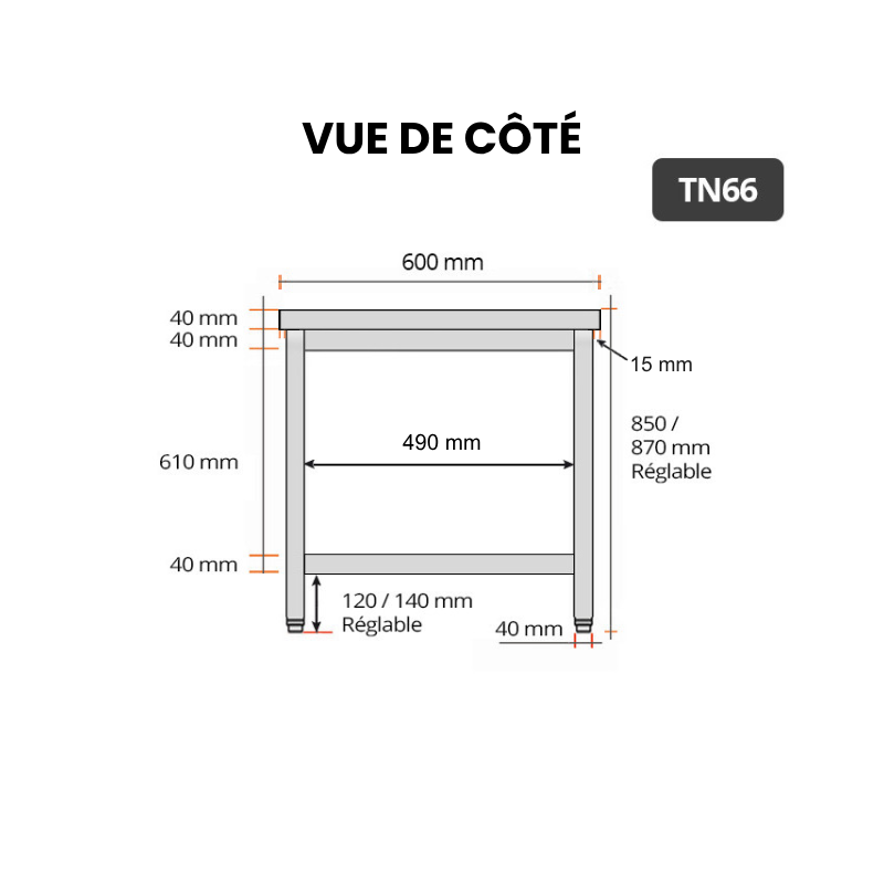 - Compatible avec toutes les tables en acier inoxydable TN66 et TN66A