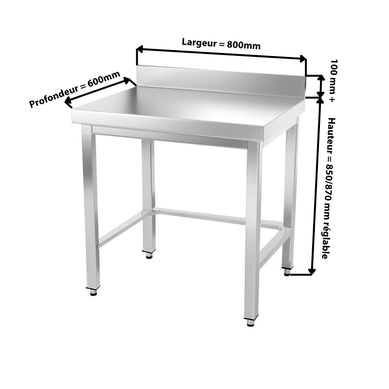 - Table de travail professionnelle en acier inoxydable (TOP AISI 304)