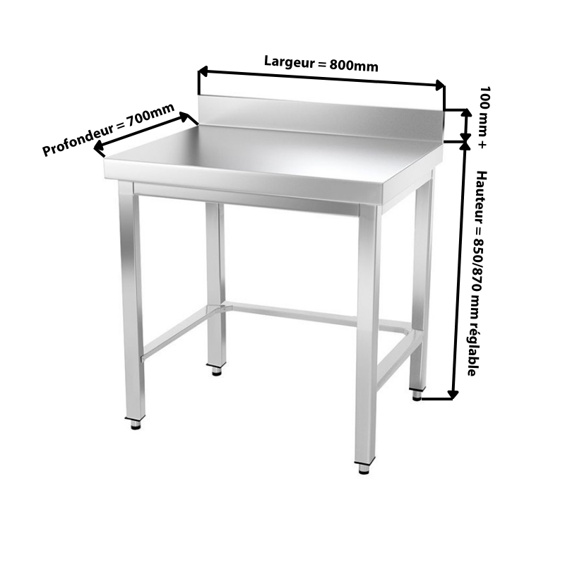 - Hauteur réglable pour les pieds : 850 à 870 mm