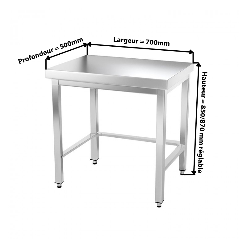 - Etagère inférieure 700 x 500 mm en acier inoxydable pour table de travail inox