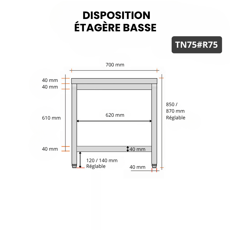 - Compatible avec toutes les tables en acier inoxydable TN75 et TN75A