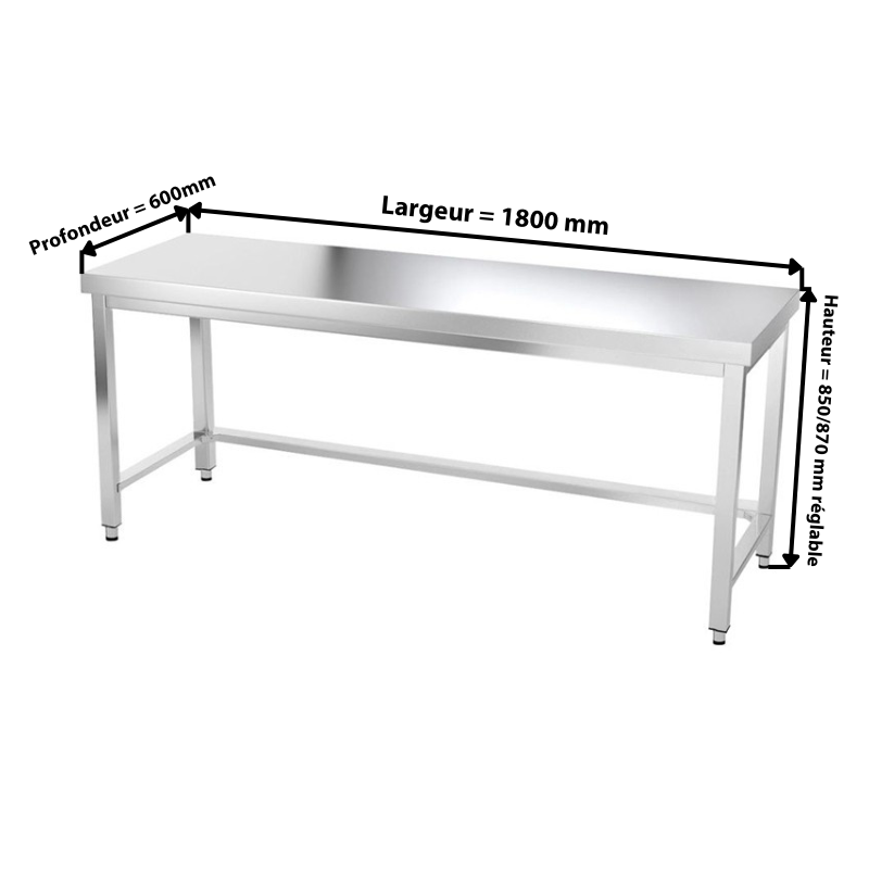 - Table de travail professionnelle en acier inoxydable (TOP AISI 304)