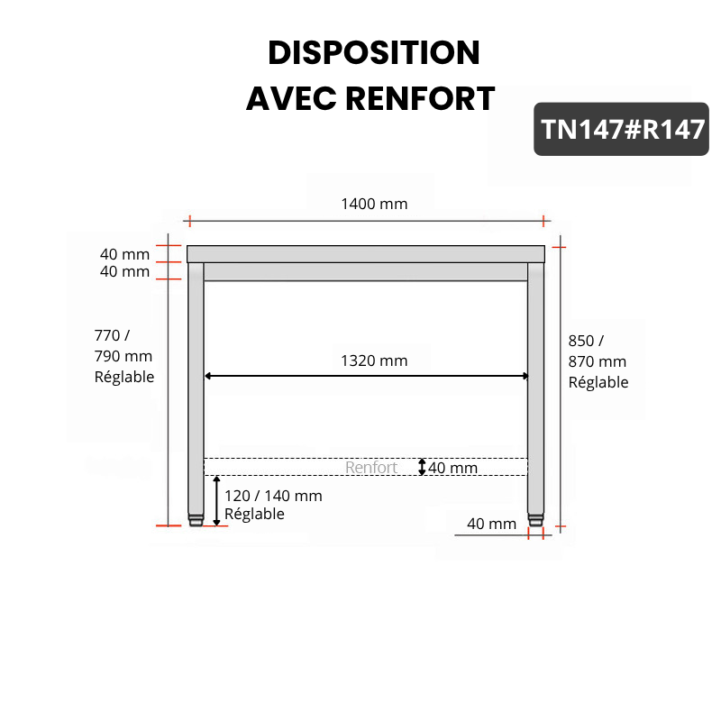 - Compatible avec toutes les tables en acier inoxydable TN147 et TN147A