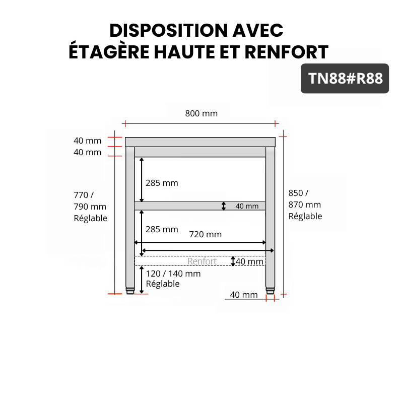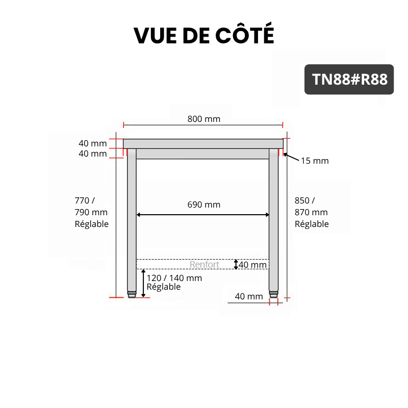 - Compatible avec toutes les tables en acier inoxydable TN88 et TN88A