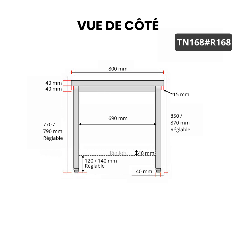 - Compatible avec toutes les tables en acier inoxydable TN168 et TN168A