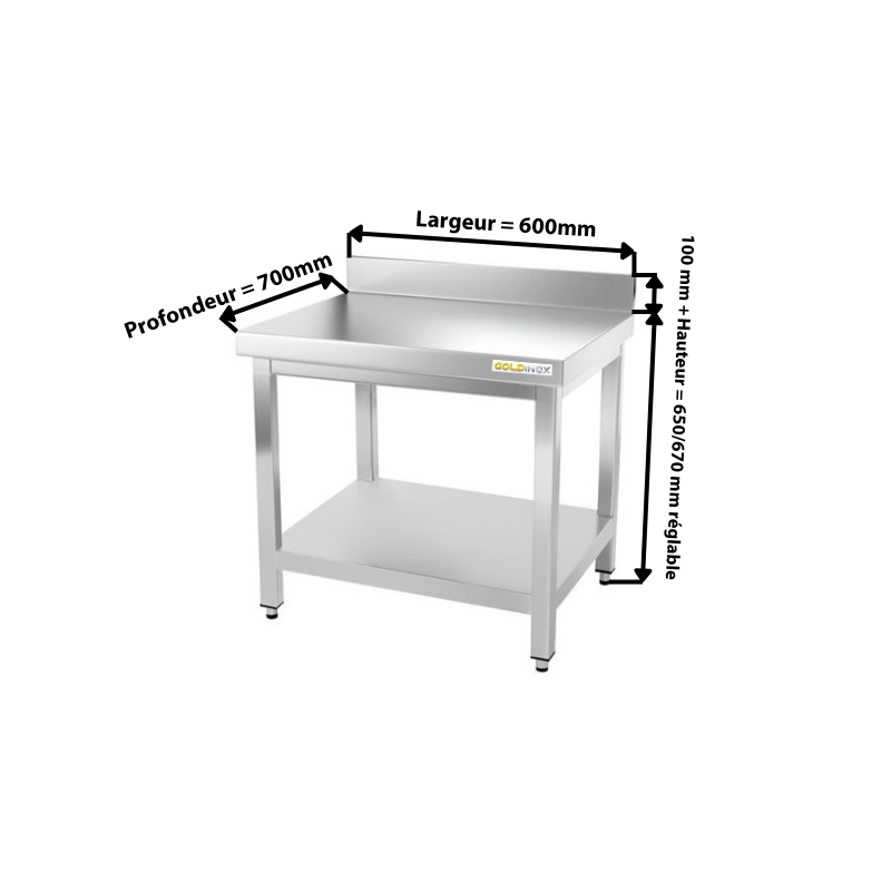 Nos tables en acier inoxydable de marque GOLDINOX® permettent un meilleur aménagement de votre cuisine. Elles sont conçues pour une utilisation intensive et supportent des charges très élevées. Nos tables inox répondent aux normes obligatoires pour le mobilier en milieu professionnel. Le montage est très simple à réaliser et nécessite peu de temps d'exécution.