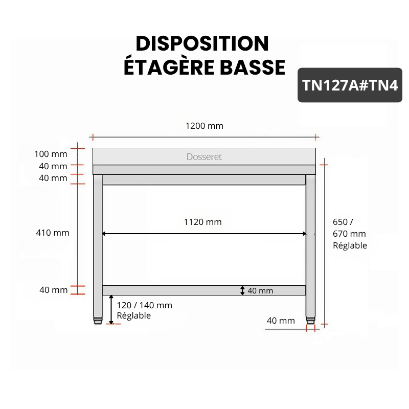 - Compatible avec toutes les tables en acier inoxydable TN127 et TN127A
