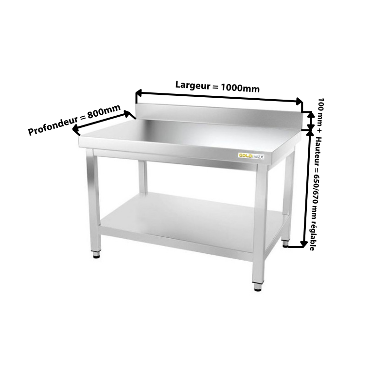 Nos tables en acier inoxydable de marque GOLDINOX® vous permettent un meilleur aménagement de votre cuisine. Elles sont conçues pour une utilisation intensive et supportent des charges très élevées. Nos tables inox répondent aux normes obligatoires pour le mobilier en milieu professionnel. Le montage est très simple à réaliser et nécessite peu de temps d'exécution.