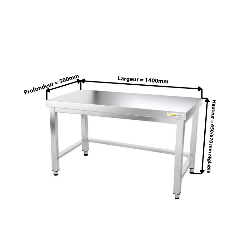 - Etagère inférieure 1400 x 500 mm en acier inoxydable pour table de travail inox