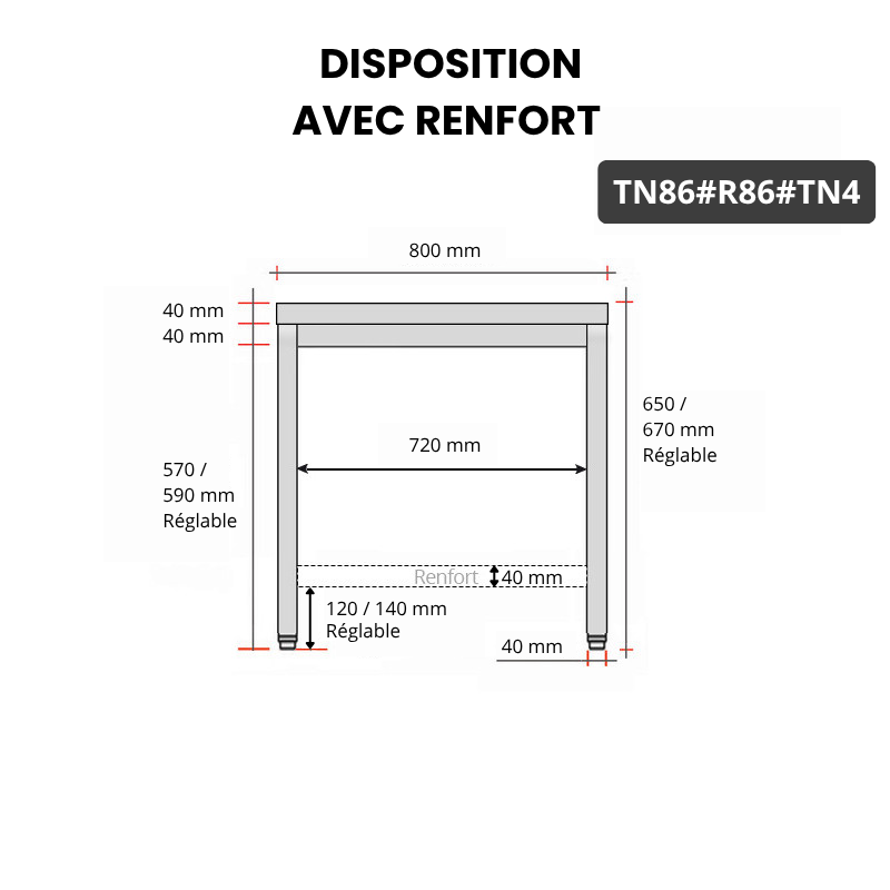 - Compatible avec toutes les tables en acier inoxydable TN86 et TN86A