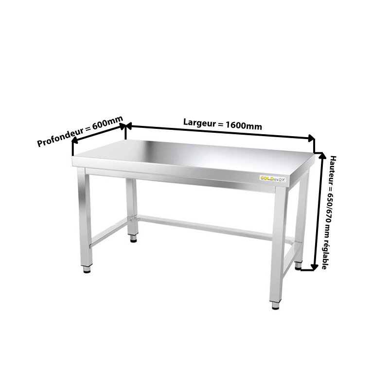 Nos tables en acier inoxydable de marque GOLDINOX® permettent un meilleur aménagement de votre cuisine. Elles sont conçues pour une utilisation intensive et supportent des charges très élevées. Nos tables inox répondent aux normes obligatoires pour le mobilier en milieu professionnel. Le montage est très simple à réaliser et nécessite peu de temps d'exécution.