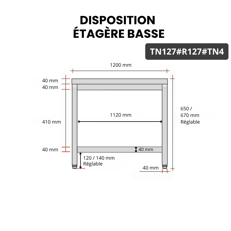 - Compatible avec toutes les tables en acier inoxydable TN127 et TN127A