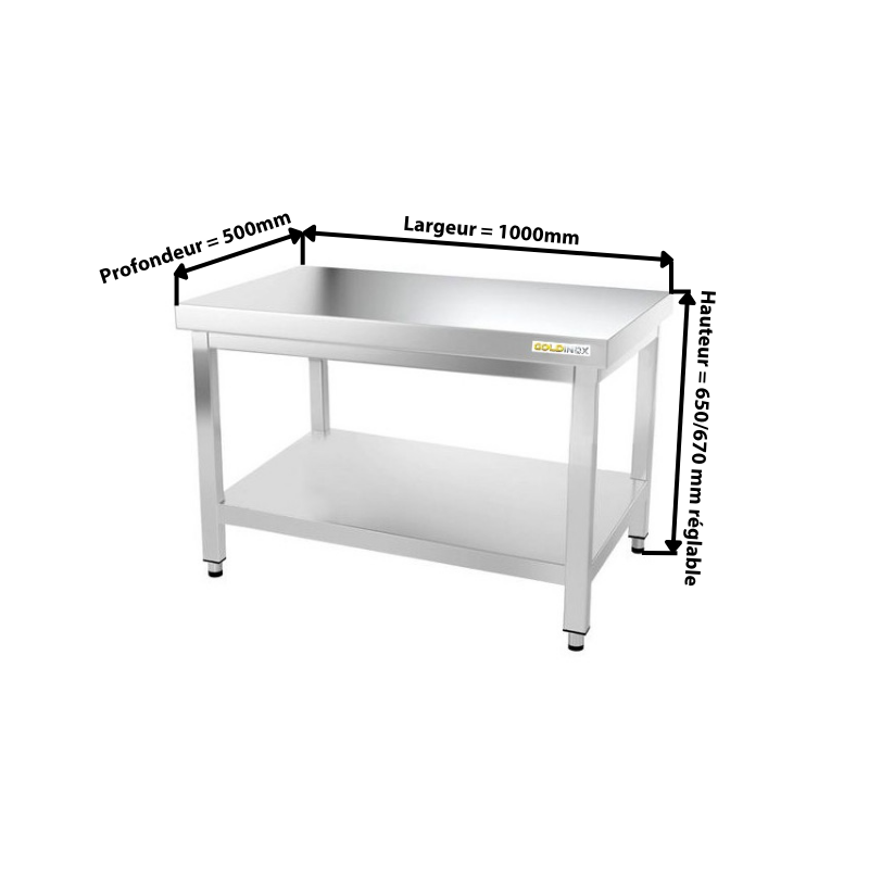 - Etagère inférieure 1000 x 500 mm en acier inoxydable pour table de travail inox