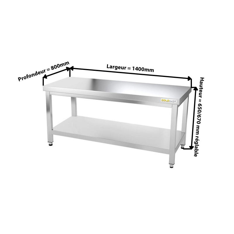 Nos tables en acier inoxydable de marque GOLDINOX® vous permettent un meilleur aménagement de votre cuisine. Elles sont conçues pour une utilisation intensive et supportent des charges très élevées. Nos tables inox répondent aux normes obligatoires pour le mobilier en milieu professionnel. Le montage est très simple à réaliser et nécessite peu de temps d'exécution.