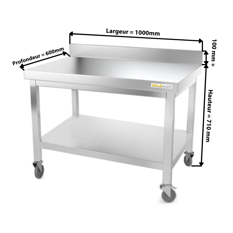 Nos tables en acier inoxydable permettent un meilleur aménagement de votre cuisine. Elles sont conçues pour une utilisation intensive et supportent des charges très élevées. Nos tables inox répondent aux normes obligatoires pour le mobilier en milieu professionnel. Le montage est très simple à réaliser et nécessite peu de temps d'exécution. Dotée de 4 roues robustes dont 2 avec freins, vous aurez alors tout le confort d'une table inox mobile, permettant un déplacement de votre matériel sans effort.