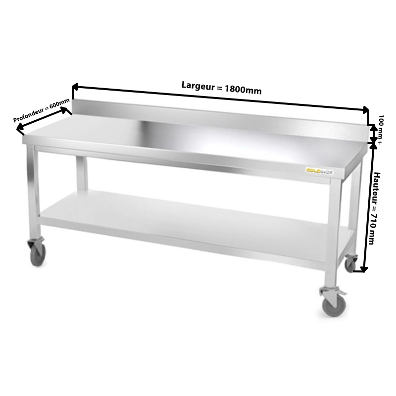 Nos tables en acier inoxydable permettent un meilleur aménagement de votre cuisine. Elles sont conçues pour une utilisation intensive et supportent des charges très élevées. Nos tables inox répondent aux normes obligatoires pour le mobilier en milieu professionnel. Le montage est très simple à réaliser et nécessite peu de temps d'exécution. Dotée de 4 roues robustes dont 2 avec freins, vous aurez alors tout le confort d'une table inox mobile, permettant un déplacement de votre matériel sans effort.