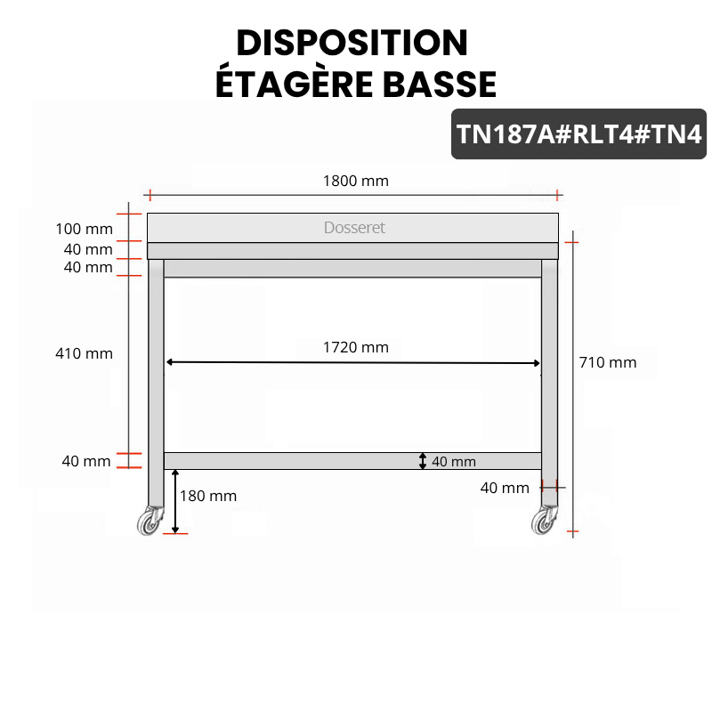 - Compatible avec toutes les tables en acier inoxydable TN187 et TN187A