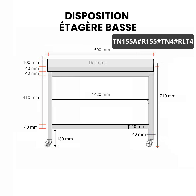 - Compatible avec toutes les tables en acier inoxydable TN155 et TN155A