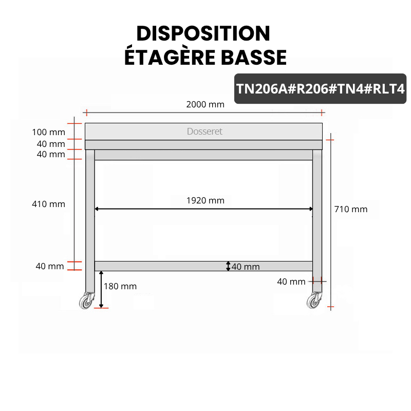 - Compatible avec toutes les tables en acier inoxydable TN206 et TN206A