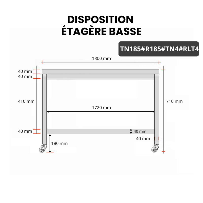 - Compatible avec toutes les tables en acier inoxydable TN205 et TN205A