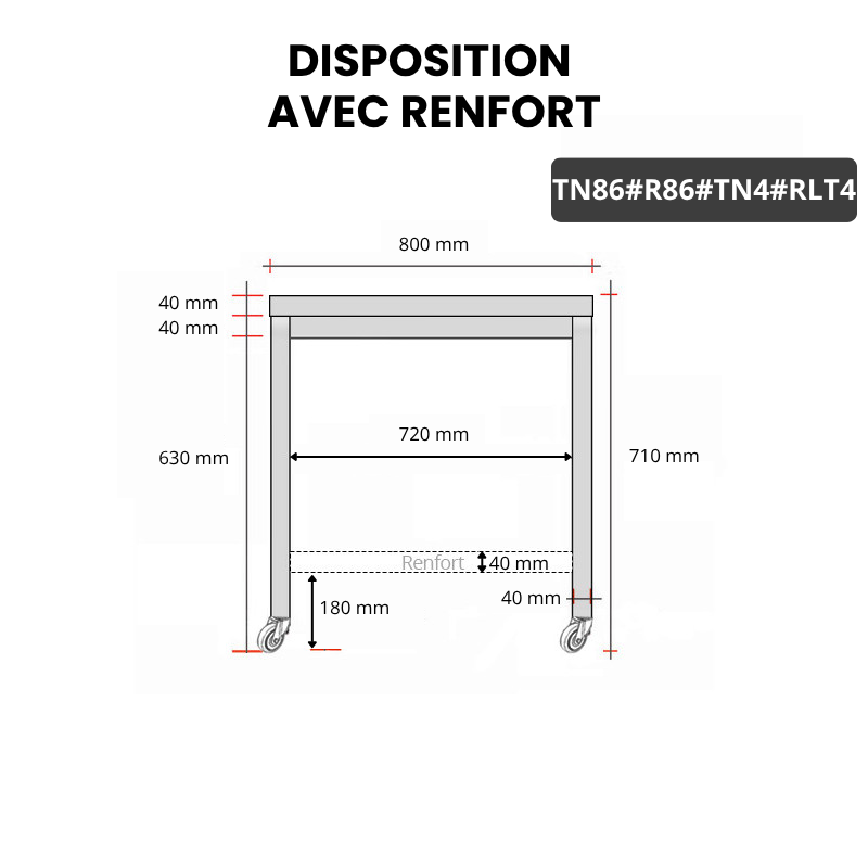 - Compatible avec toutes les tables en acier inoxydable TN86 et TN86A