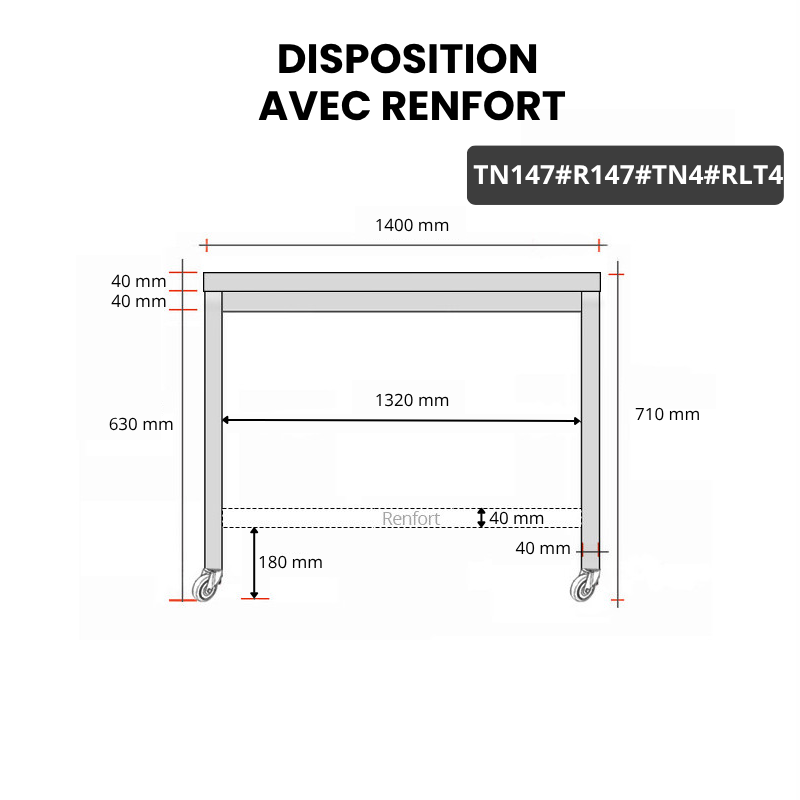 - Compatible avec toutes les tables en acier inoxydable TN147 et TN147A